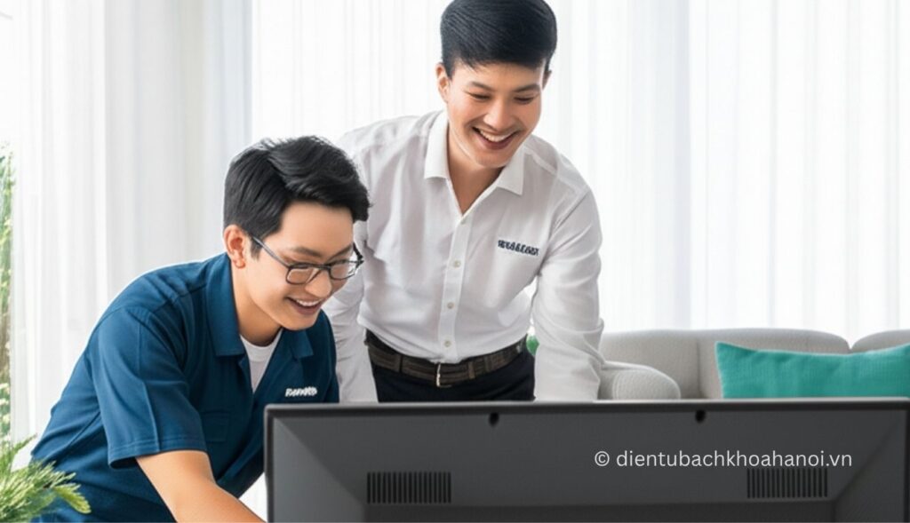 - Kiểm tra & Bàn giao: Kỹ thuật viên cùng bạn kiểm tra lại tivi sau sửa, đảm bảo mọi chức năng hoạt động ổn định. Sau đó, bàn giao tivi và phiếu bảo hành.